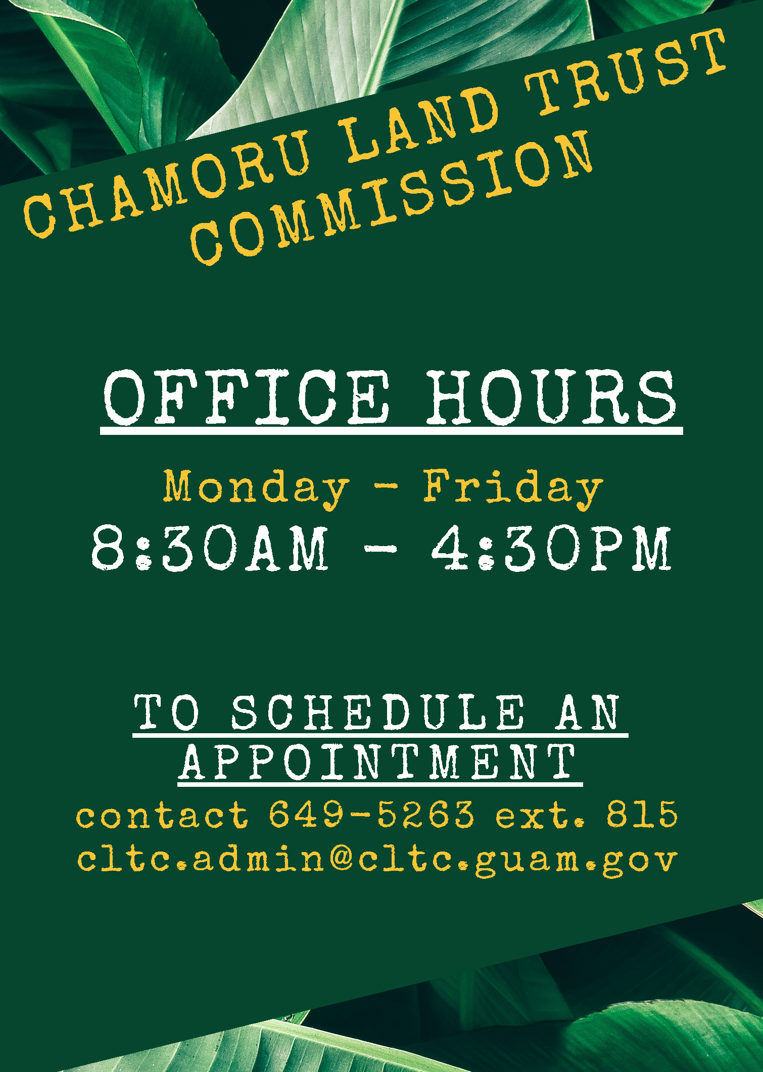 For CHamoru Land Trust inquiries, please contact 649-5263 ext. 815 or email us at cltc.admin@cltc.guam.gov. Our office will get back to you as soon as possible. Thank you.Request for Proposals (RFP)